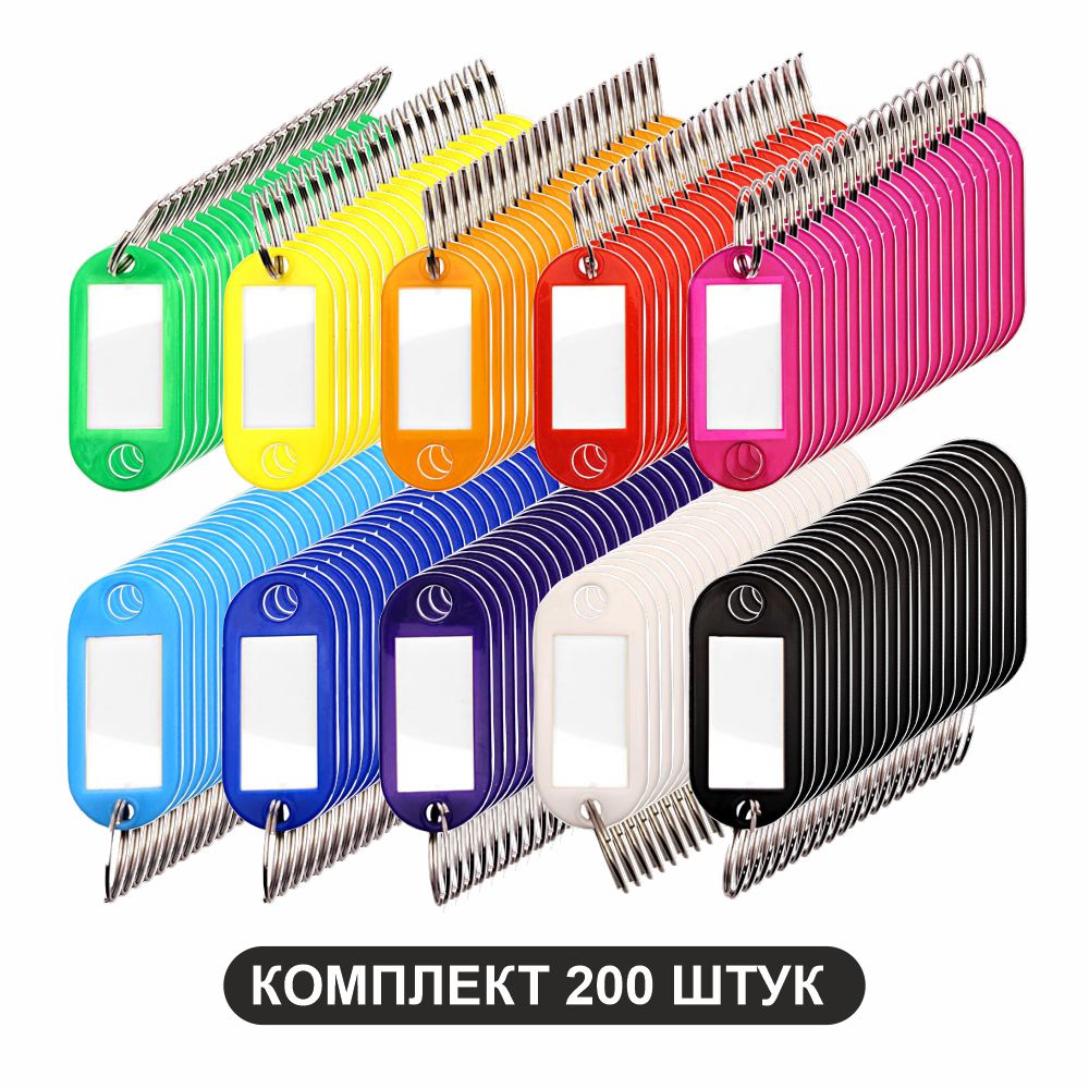 Комплект бирок для ключей, 200 штук. Разные цвета.