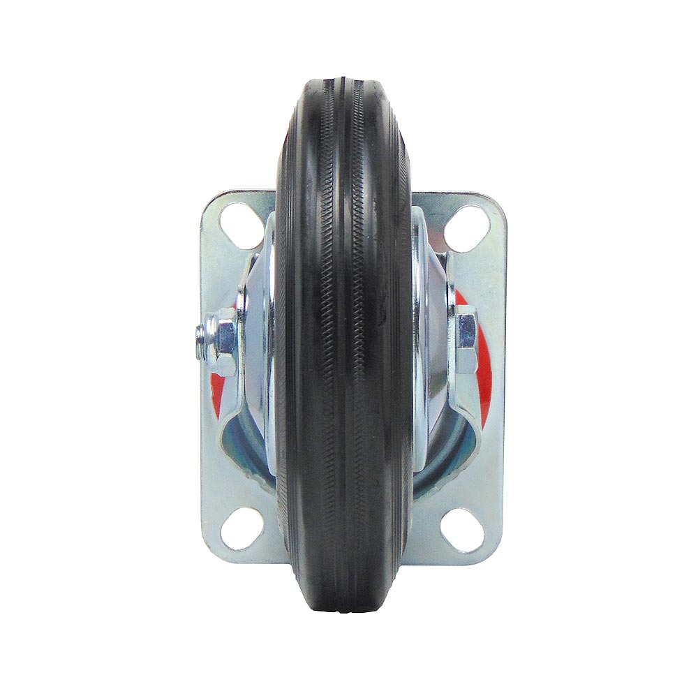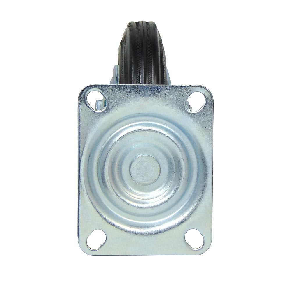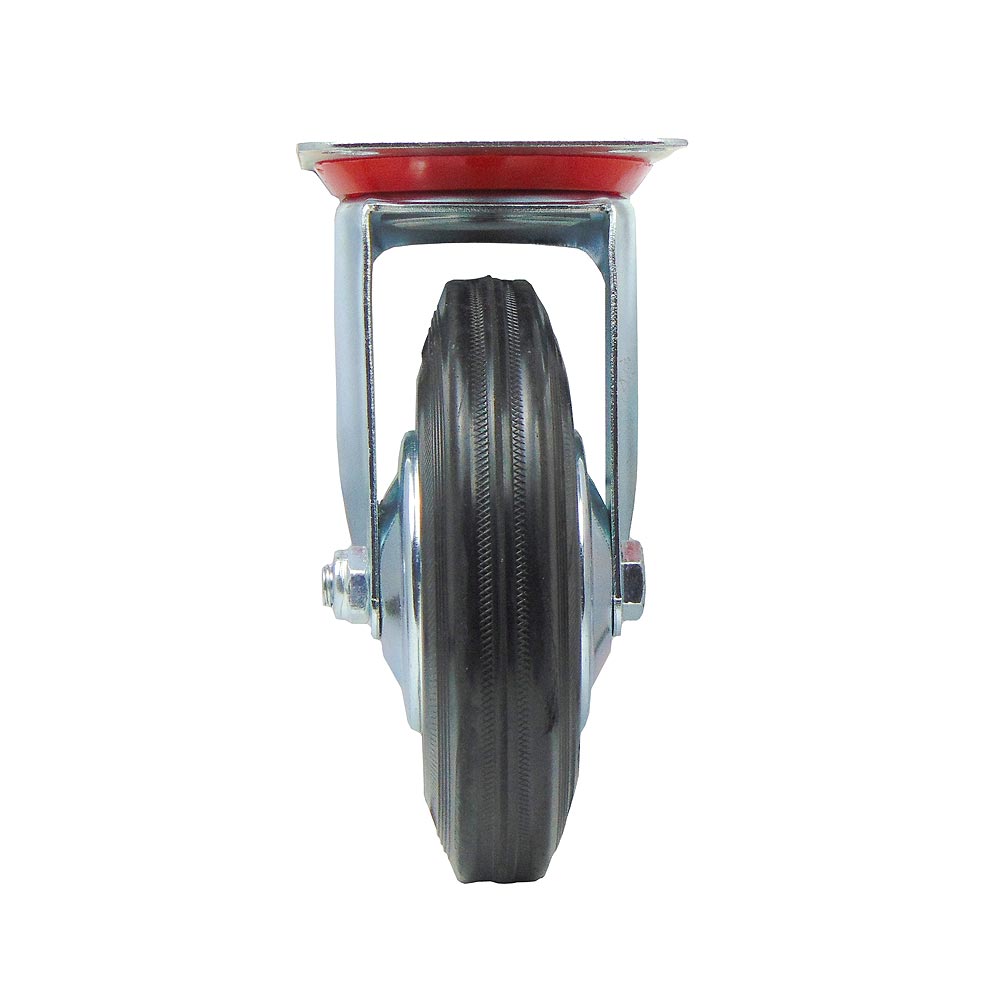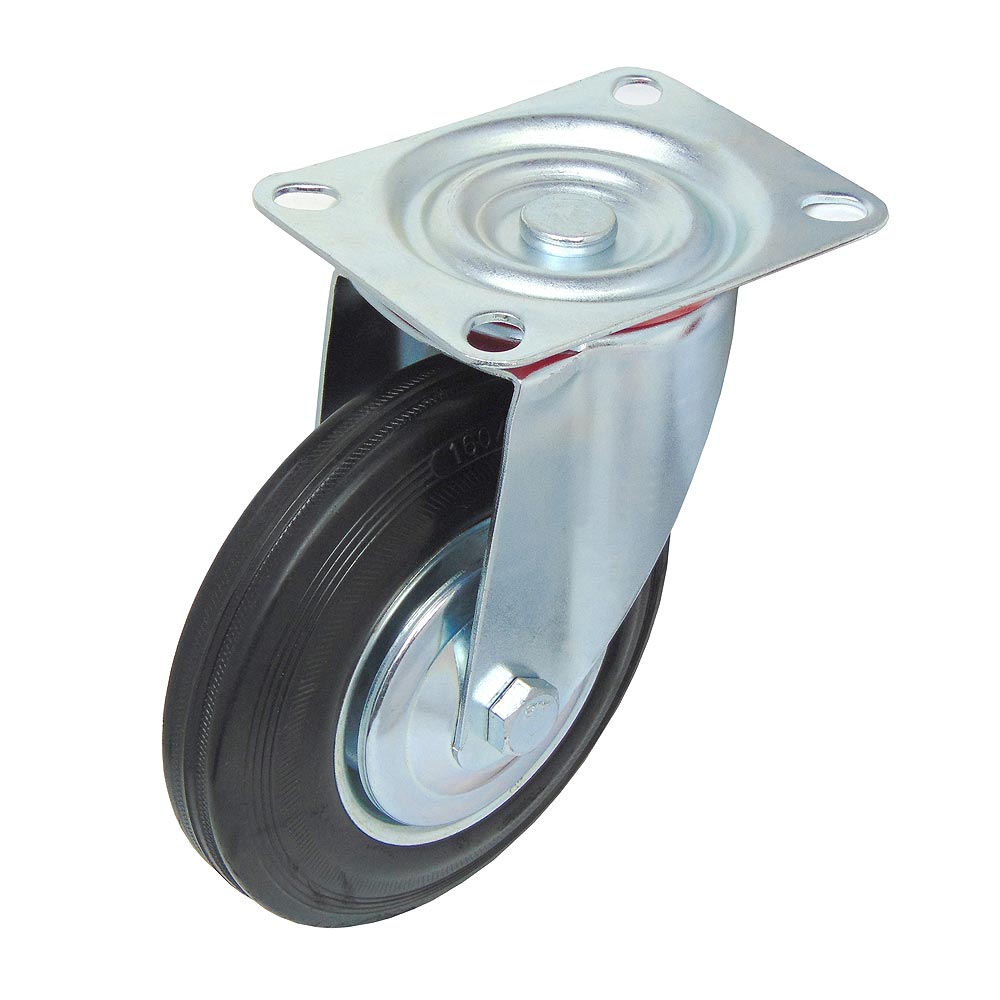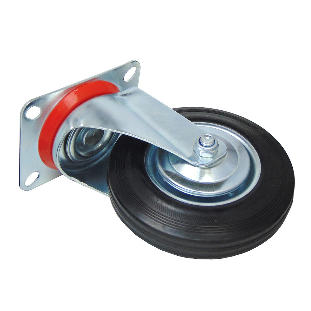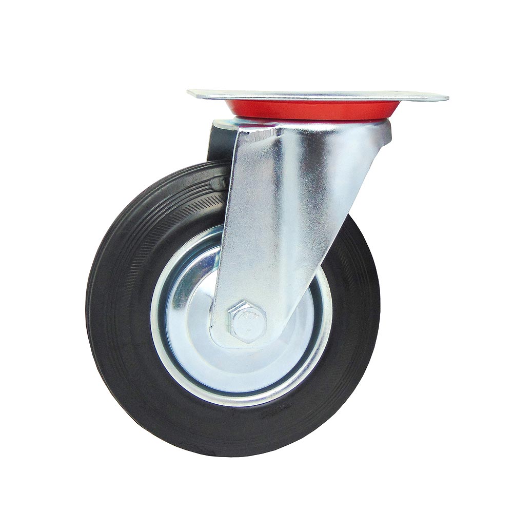 Для плавного перемещения по различным поверхностям используется шинка из черной резины. Ось колеса оборудована надежным роликовым подшипником, а механизм поворота кронштейна оснащен двухрядным шарикоподшипником с защитой от пыли из пластика.