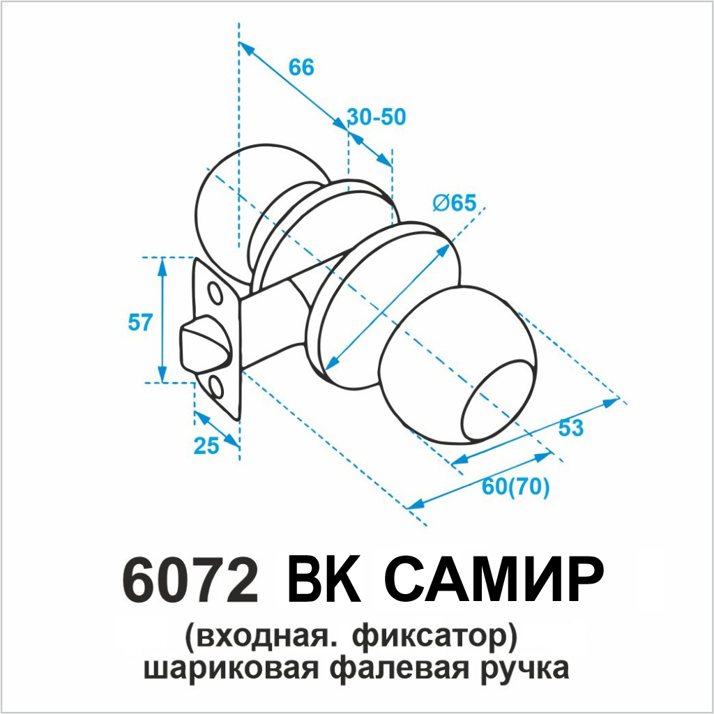 Ручка для входных и межкомнатных дверей с цилиндровым механизмом, 5 английских ключей, бексет 60 или 70 мм, квадрат 7,5 мм
