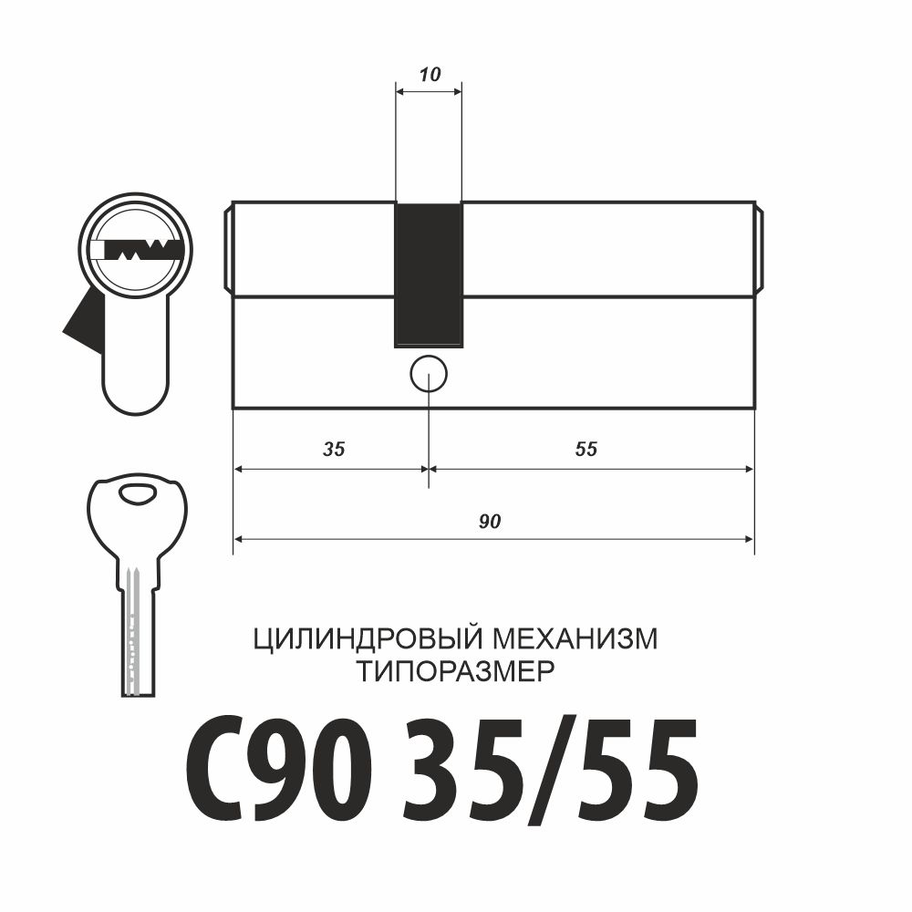 Для комплектации врезных замков, размер - 90 мм, типоразмер цилиндра - 35/55, 5 перфоключей, количество пинов - 5, отклонение кулачка на 30 градусов защищает от выбивания.