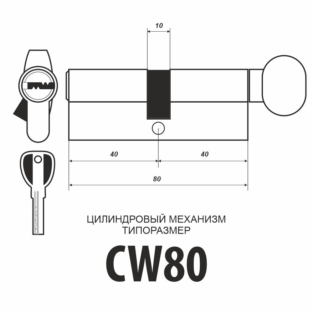 Для комплектации врезных замков, размер - 80 мм, типоразмер цилиндра - 40/40, 5 перфоключей, отклонение кулачка на 30 градусов защищает от выбивания. Материал - латунь.