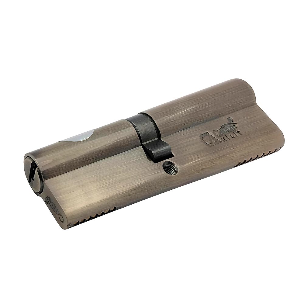 Для комплектации врезных замков, размер - 110 мм, типоразмер цилиндра - 55/55, 5 перфоключей, отклонение кулачка на 30 градусов защищает от выбивания. Материал - латунь.