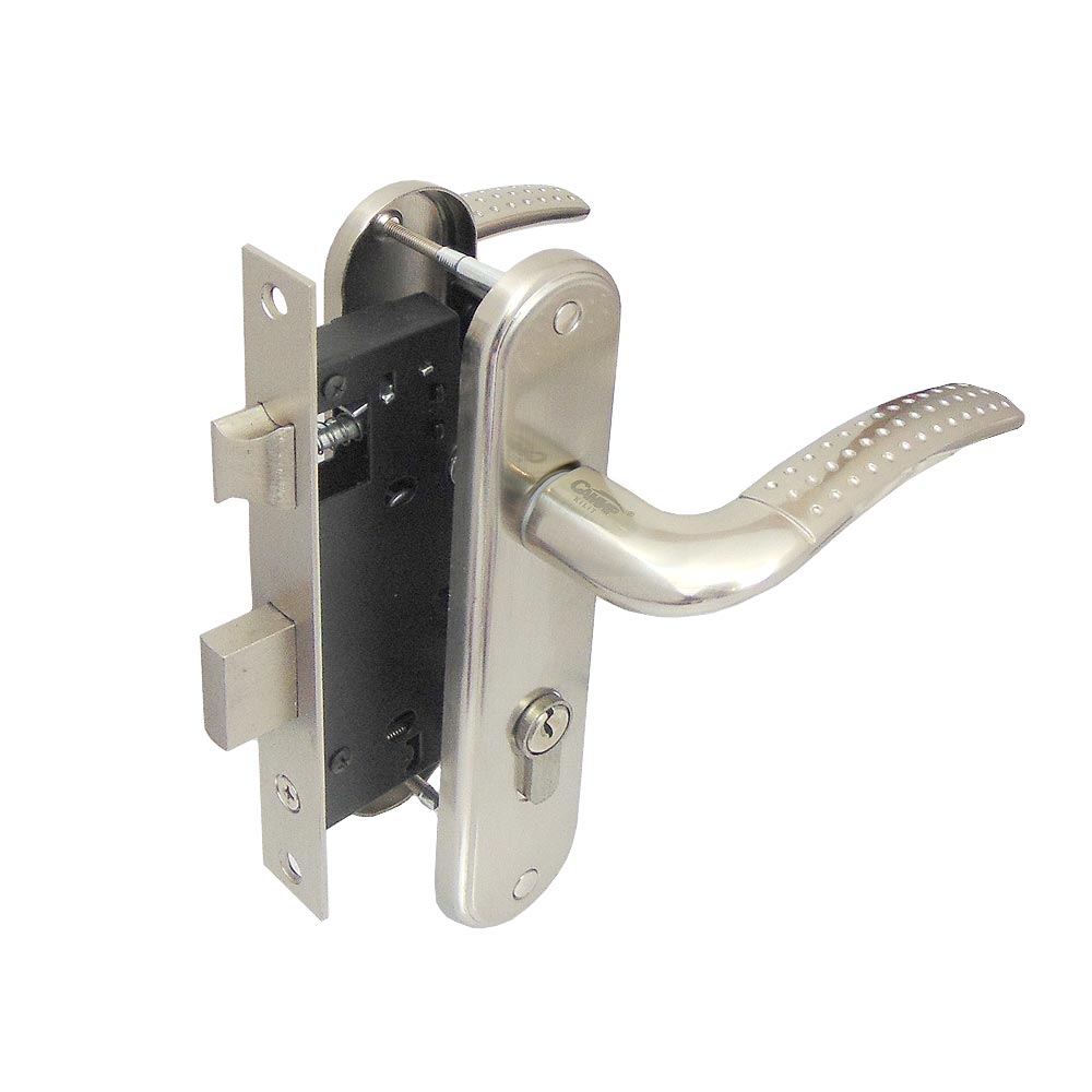 Ручки на планке, врезной механизм с универсальной защелкой и прямоугольным ригелем, цилиндровый механизм 66 мм ключ-ключ с 3 английскими ключами