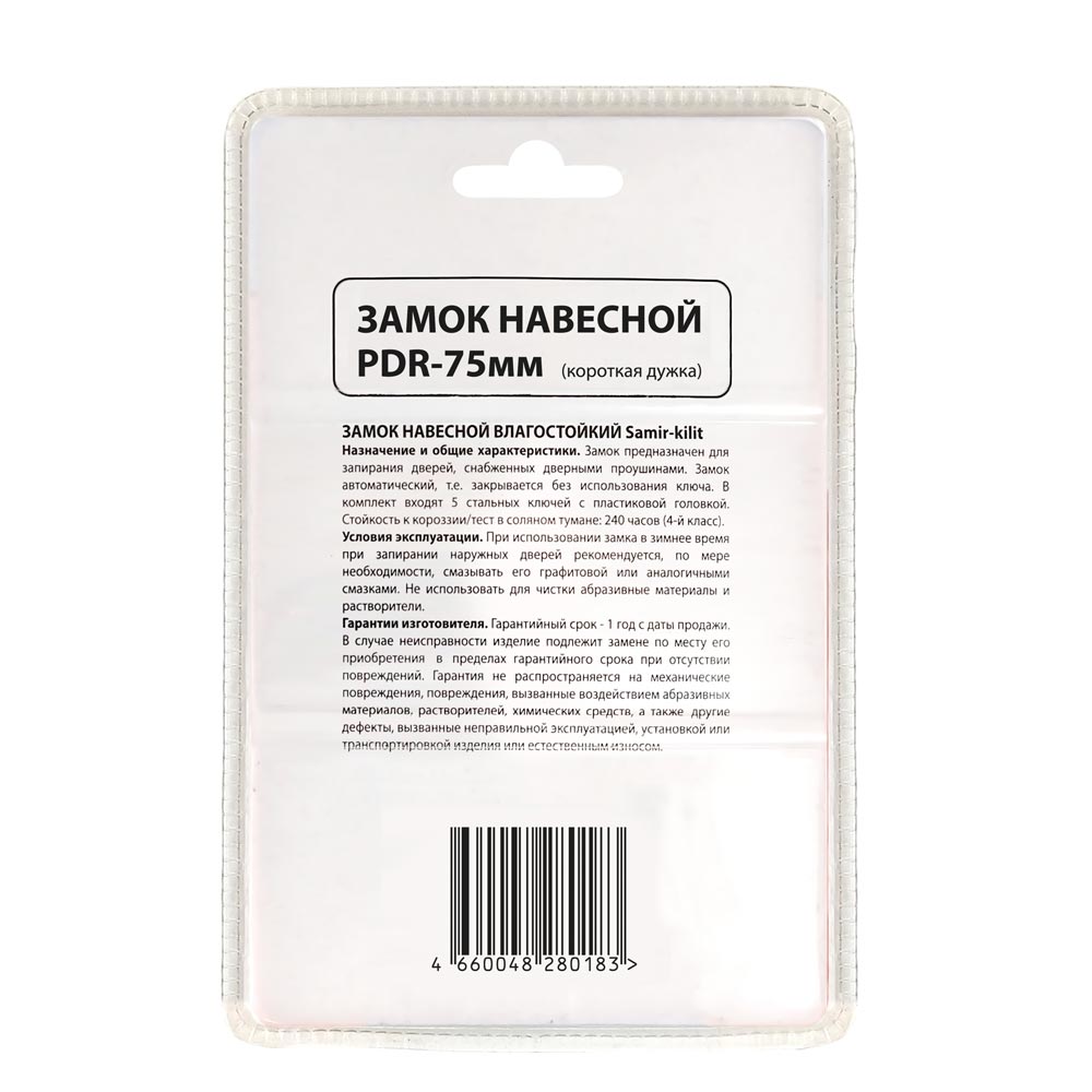 автомат, в блистере, влагостойкий, короткая дужка, цвет изделия: матовый хром, 5 английских ключей с пластиковой головкой. Вес: PDR-38 - 185 г (без блистера - 137 г). PDR-50 - 351 г (без блистера - 298 г). PDR-63 - 583 г (без блистера - 508 г). PDR-75 - 793 г (без блистера - 705 г).