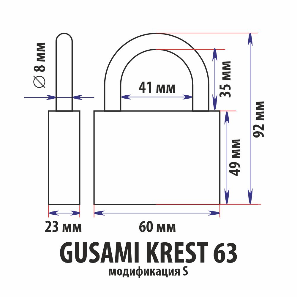 усиленная защита, корпус - сталь, дужка - закаленная хромированная сталь, секретный механизм - латунь, секретный механизм - крестовой, короткая дужка, 3 крестовых ключа, цвет дужки: хром.