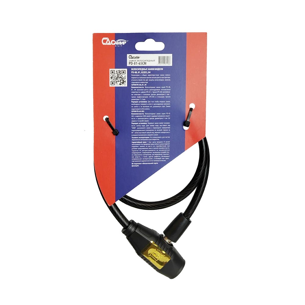 Велосипедный, с цилиндровым механизмом, длина троса - 65 см, толщина троса - 8 мм, 2 английских ключа с пластиковой головкой. Габариты коробки (10 штук): 350мм х 110 мм х 110 мм. Вес брутто одного замка: 130 г.