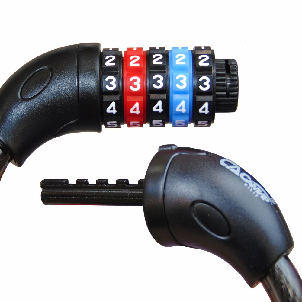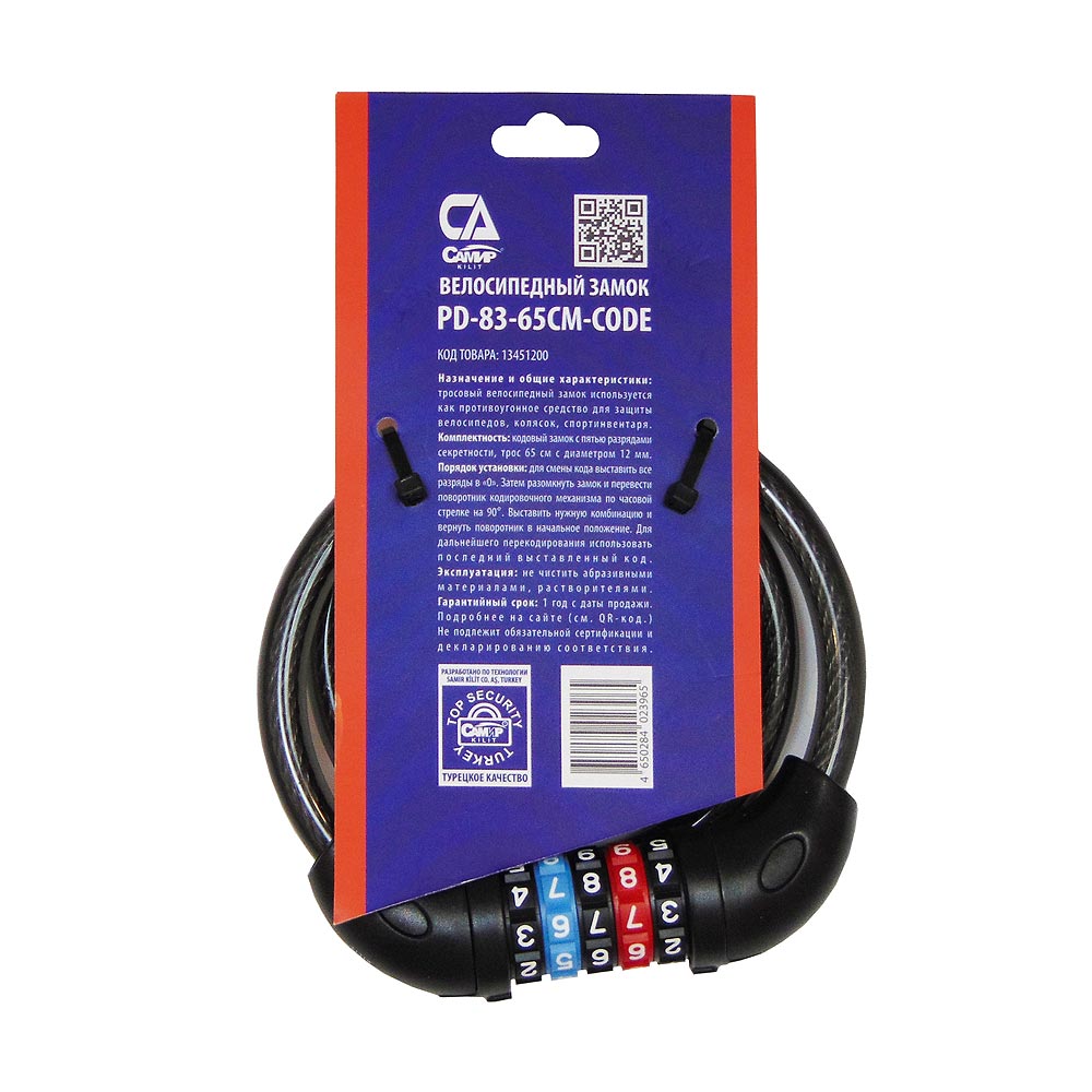 Велосипедный, с большим кодовым замком (5 разрядов), длина троса - 65 см, толщина троса - 12 мм. Габариты коробки (10 штук): 80мм х 50 мм х 60 мм. Вес брутто одного замка: 260 г.