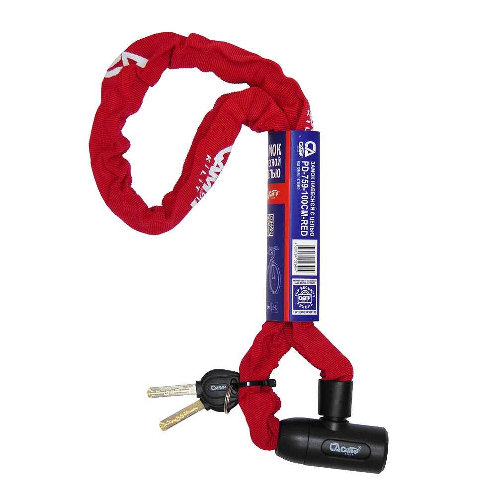 Велосипедный, с цилиндровым замком с перфоключом, в матерчатом кожухе, с защитой от влаги 2 перфоключа с пластиковой головкой.